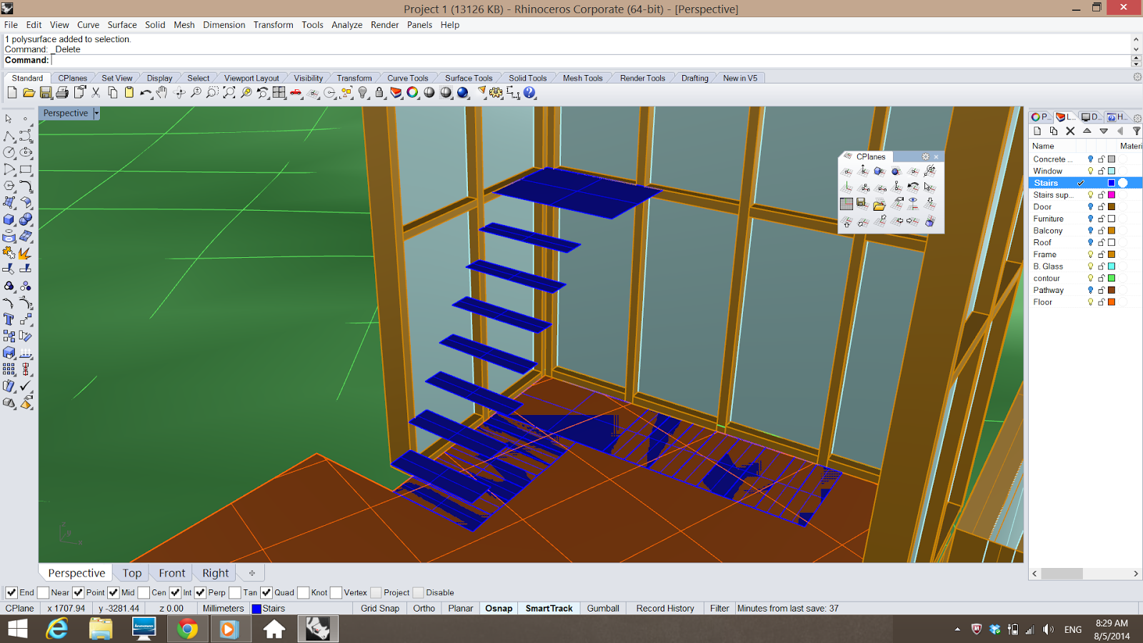 After the submission last week, I proceeded my progress by finishing off the interior of my building. I did the staircase by extruding the lines I drew before. It took me quite some time to finish everything as I need to extrude it stairs by stairs.